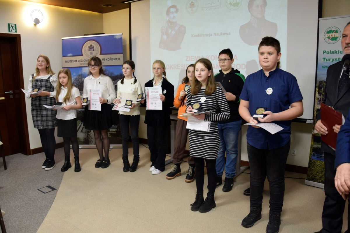 Przed rozpoczęciem części referatowej konferencji odbyło się uroczyste podsumowanie konkursu. Zwycięzcy otrzymali okolicznościowe dyplomy i medale przygotowane przez Muzeum Regionalne PTTK w Końkich, a prezes Zarządu Okręgu Świętokrzyskiego PZF w towarzystwie naczelnika Urzędu Pocztowego w Końskich oraz dyrektora Szkoły Podstawowej nr 2 obdarował wszystkich uczestników konkursu walorami filatelistycznymi. Wydarzenie było też okazją do wyróżnienia najaktywniejszych członków koła. Srebrne i Brązowe Młodzieżowe Honorowe Odznaki PZF otrzymało dwunastu młodych filatelistów.