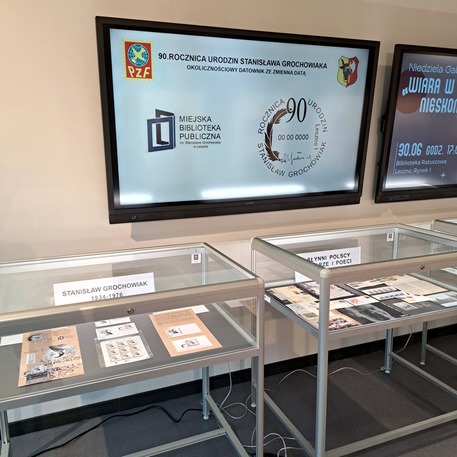 Koło Miejskie PZF w Lesznie w okresie od czerwca do sierpnia 2025 roku w siedzibie Miejskiej Biblioteki Publicznej im Stanisława Grochowiaka zorganizowało kolejny pokaz filatelistyczny pt. „Słynni polscy pisarze i poeci w filatelistyce”.