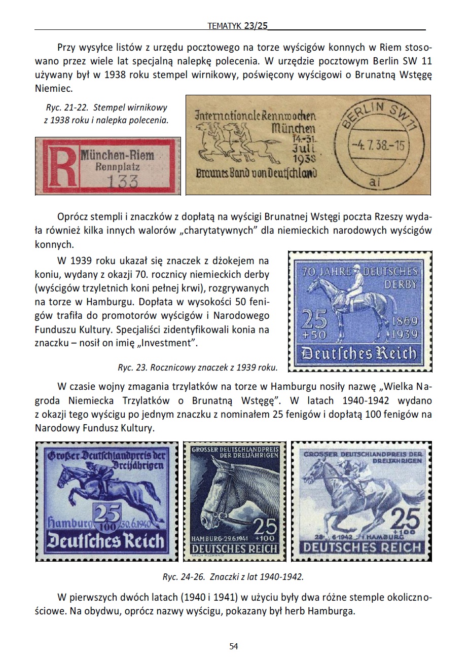 • Ryszard Prange, Wyścigi konne na znaczkach z dopłatami i na stemplach III Rzeszy, s. 51–56.