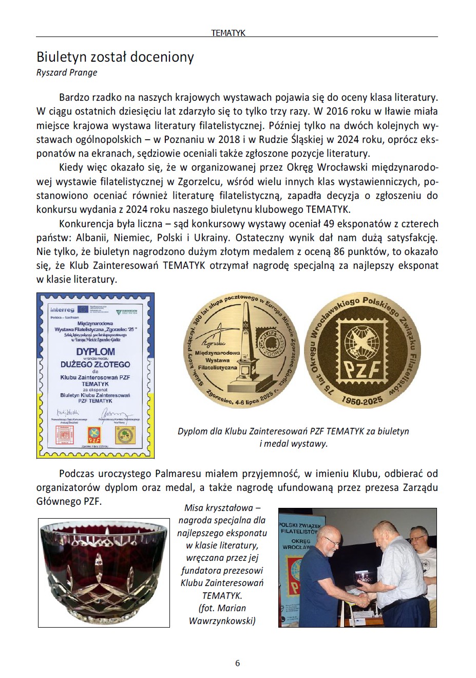 Drugie półrocze 2025 roku Klub TEMATYK rozpoczął wydaniem kolejnego biuletynu. Sierpniowy numer ukazał się po wielkim sukcesie na wystawie w Zgorzelcu. Duży złoty medal zobowiązuje – nie obniżamy poziomu. Można się o tym przekonać zapisując się do naszego Klubu.