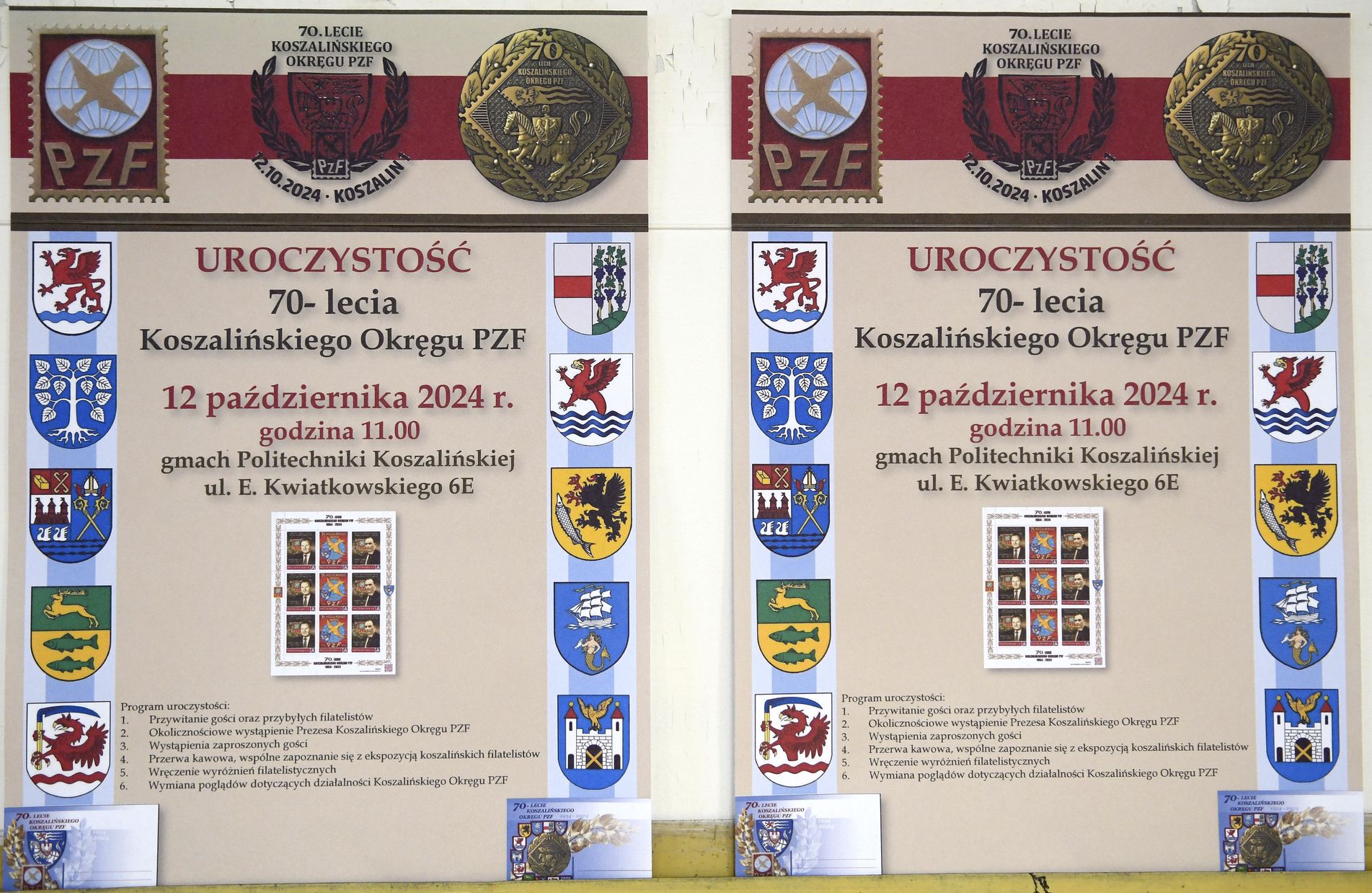 Po zakończeniu oficjalnej części uroczystości w auli można było obejrzeć gabloty z eksponatami filatelistów z Okręgu Koszalińskiego, jak również zakupić liczne pamiątki filatelistyczne na stoisku poczty.