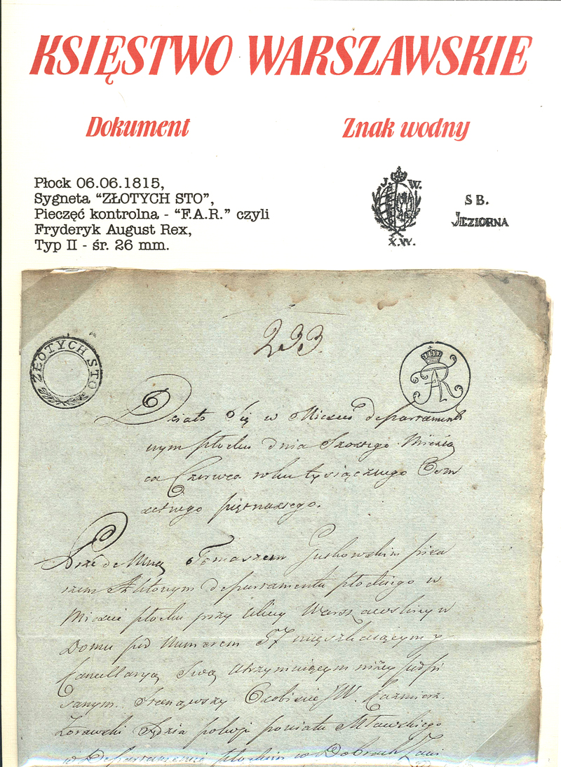 Władysław Ługowski PAPIERY STEMPLOWE - KSIĘSTWO WARSZAWSKIE